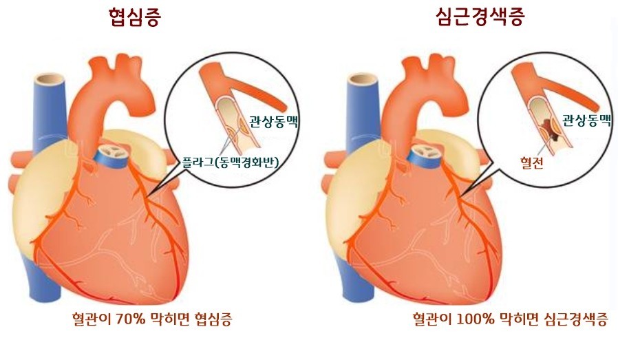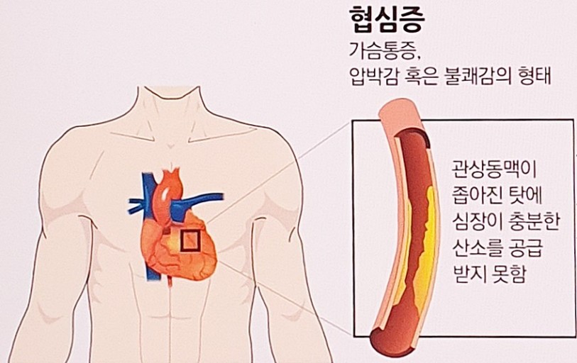 협심증은 심장 혈관과 연관된 질환으로 가슴 답답한 증상의 대표적인 유형으로 알려져 있다. 심장질환이 발생하는 이유 중 가장 큰 원인은 심장에 혈액을 공급하는 관상동맥이 좁아지거나 막혀서 심장에 충분한 혈액이 공급되지 않는 것이다. 협심증과 심근경색증이 발생하는 대표적인 이유이다.